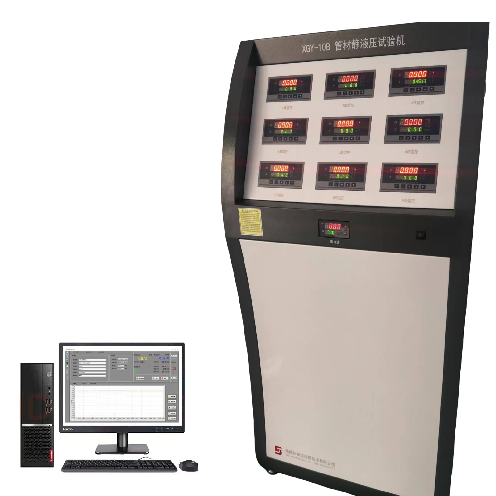 我公司是采用国际airless型压力测控系统,其核心为丹麦相同控压方式的双CPU控制(电脑及仪表),其采用分压控制技术分别控制各支路试验,相互独立,互不干扰;可同时做不同压力,不同时长的各类试验。适用于PVC、PE、PP-R等各种不同材料及管径长期静液压试验、瞬时爆破试验、热稳定性8760试验等。